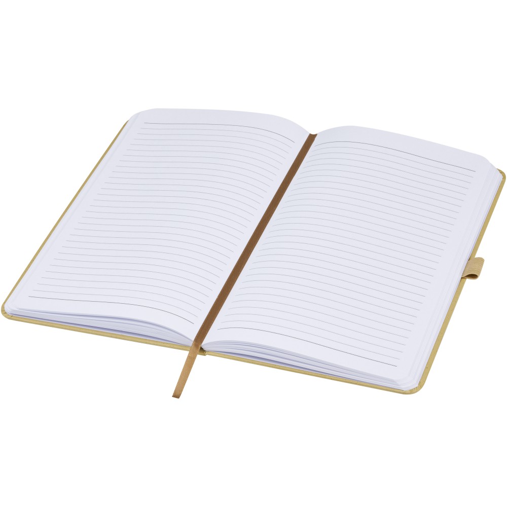 Könnyű, keményfedeles jegyzetfüzet a mindennapi jegyzeteléshez újrahasznosított alapanyagokból készült borítóval. A barna borító kávémaradványt, a zöld borító olajbogyó-maradványt, a fehér pedig kukoricamaradékot tartalmaz. 80 lap (70 g/m2) újrahasznosított fehér vonalas lapot tartalmaz.