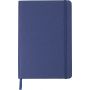 Újrahasznosított kartonból készült A5-ös jegyzetfüzet 80 vonalas lappal. Gumis záródás és könyvjelző szalag.