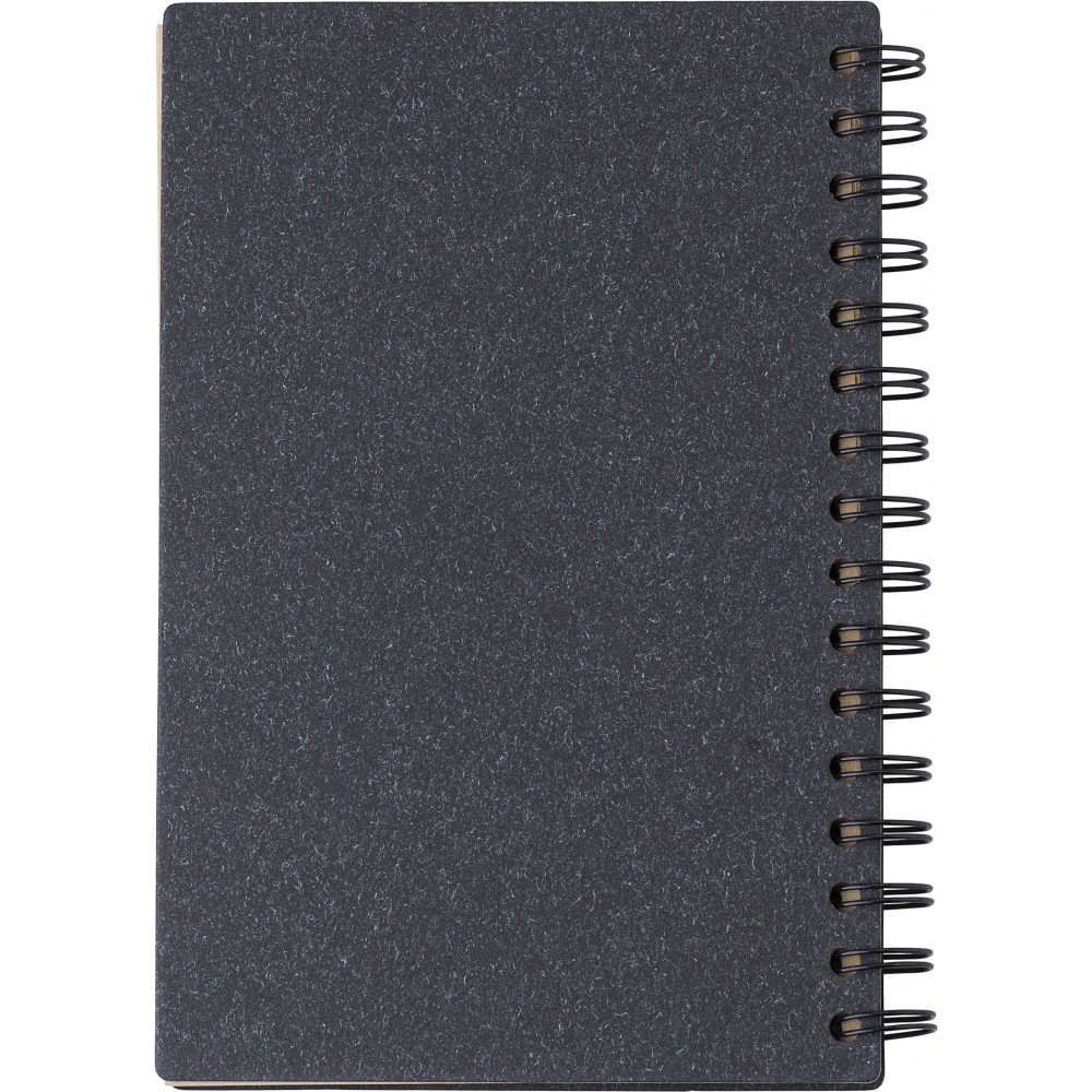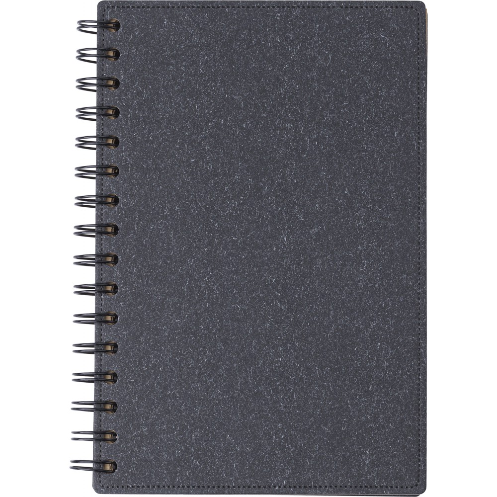 Újrahasznosított kartonból készült, keményfedeles spirálfüzet 80 vonalas, újrahasznosított barna papírlappal. Lapok minősége: 65 g/m2. Az újrahasznosított alapanyagra utaló logó minden lapon látható.