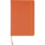 A5-ös méretű jegyzetfüzet rPET PU anyagból készült kemény borítóval, 80 vonalas lappal (70g/m2), színben illeszkedő gumipánttal és könyvjelző szalaggal. Az újrahasznosított anyagra utaló dombornyomott logóval a füzet hátoldalán.