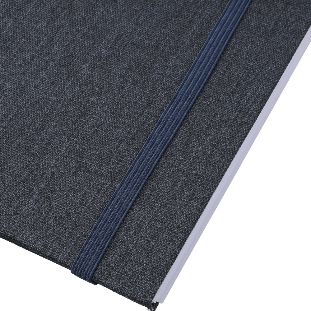 rPET jegyzetfüzet, kb. A5-ös méretű, 80 lapos. Kemény borítóval és rugalmas zárópánttal. Fehér karton spirállal (15 karikás), szalagos könyvjelzővel és 70 g/m2-es vonalas papírral. A hátoldalon rPET logóval. Selyempapírba csomagolva, nejlonzacskó nélkül.