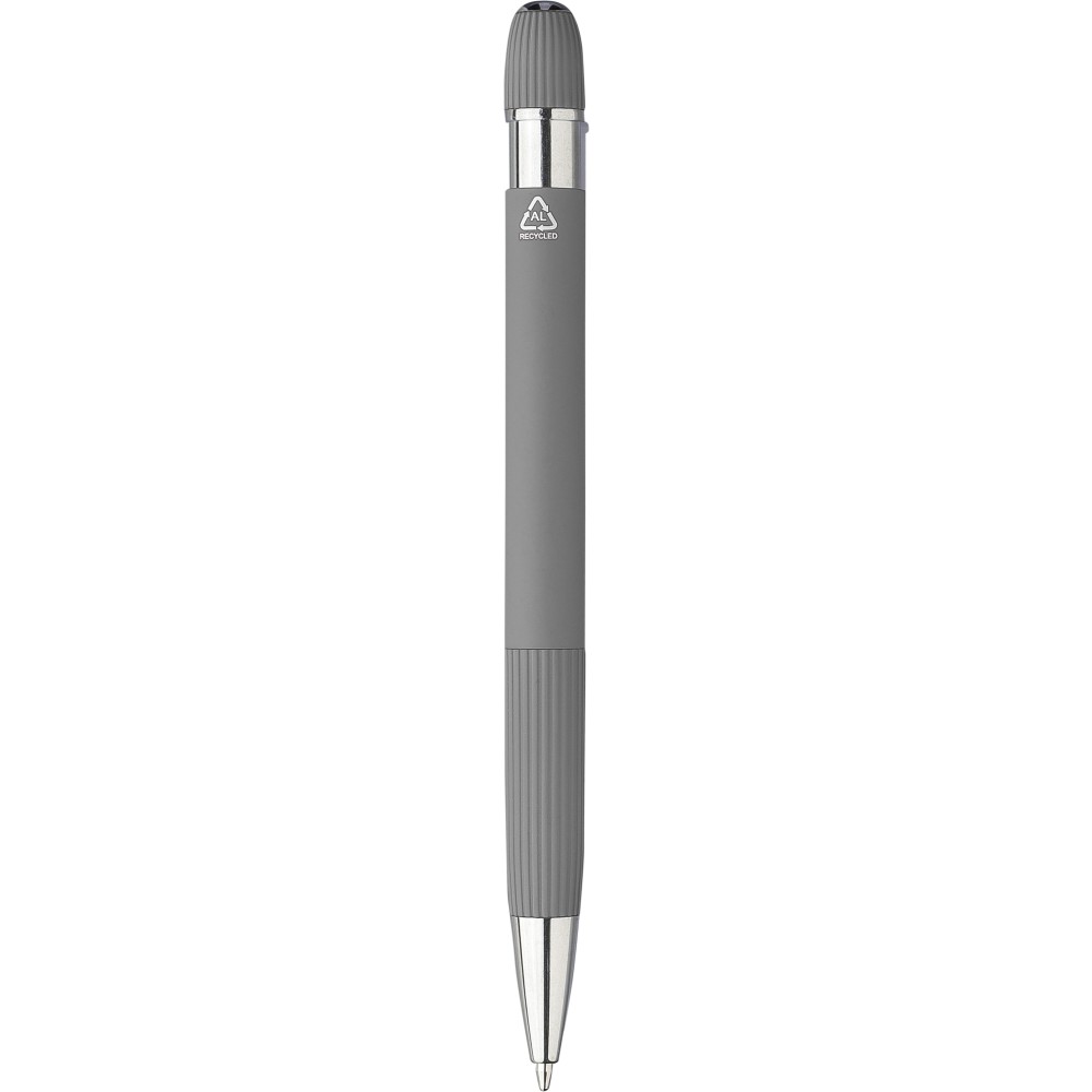 Újrahasznosított PU jegyzetfüzet és golyóstoll szett. A jegyzetfüzet kb. A5-ös méretű, 100 lapos, 80 g/m2-es vonalas lapokkal és szalagos könyvjelzővel, kordbársony hatású borítóval és dombornyomott újrahasznosított logóval rendelkezik. A golyóstoll gumírozott felülettel, csíkos markolattal, krómozott heggyel és lézergravírozott újrahasznosított logóval rendelkezik. Erős barna kartondobozban, EVA betéttel. Kék tintával szállítjuk.