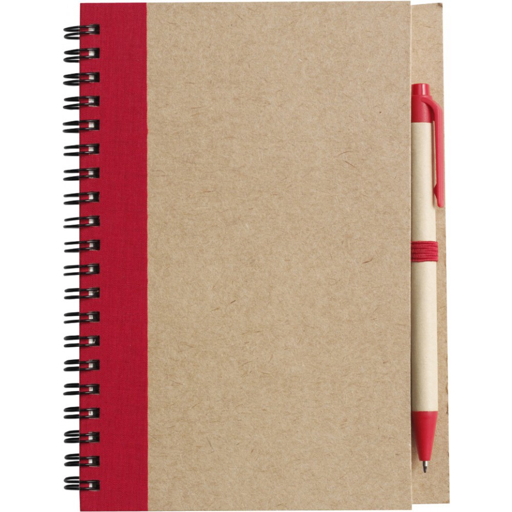 Újrahasznosított spirálfüzet tollal, 60 lapos, piros/natúr