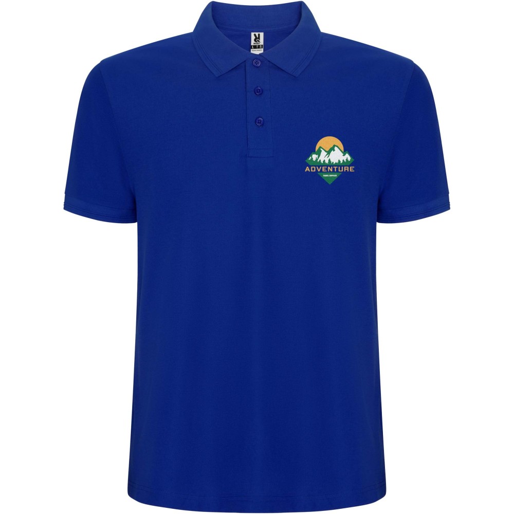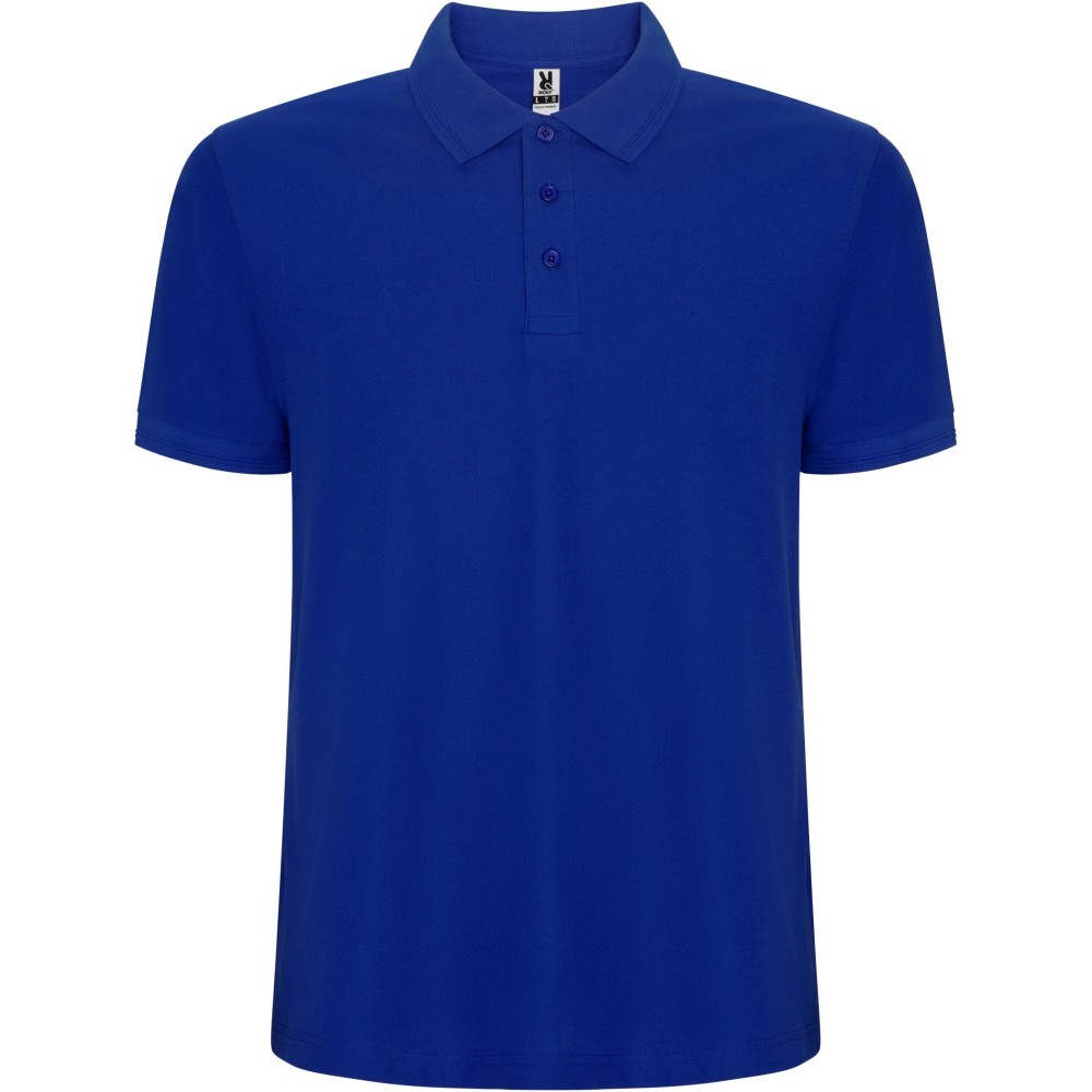 Rövidujjú galléros póló. A gallér és az ujjak passzéja 1x1 bordás anyag. A gallér megerősített, fedett varrásokkal. Oldalsliccelt. Levehető címke. Bolyhosodás elleni kezeléssel.