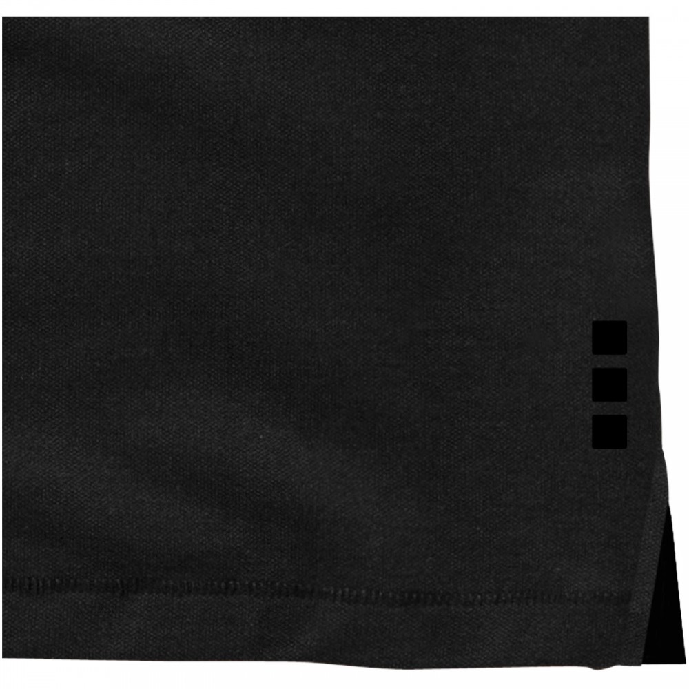 Normál szabásvonal. A férfi modell 3, a női 4 gravírozott, színben illeszkedő gombbal. Az oldalsliccben kontrasztos színű V-betét. Rejtett öltések. Tónusos logónyomat hátul. Kontrasztos színű félhold nyakbetét. Szatén szalagerősítés a nyakrészen. Saját anyagából készült gallér. Dupla piké, 95% pamut és 5% elasztán. 200g/m2.