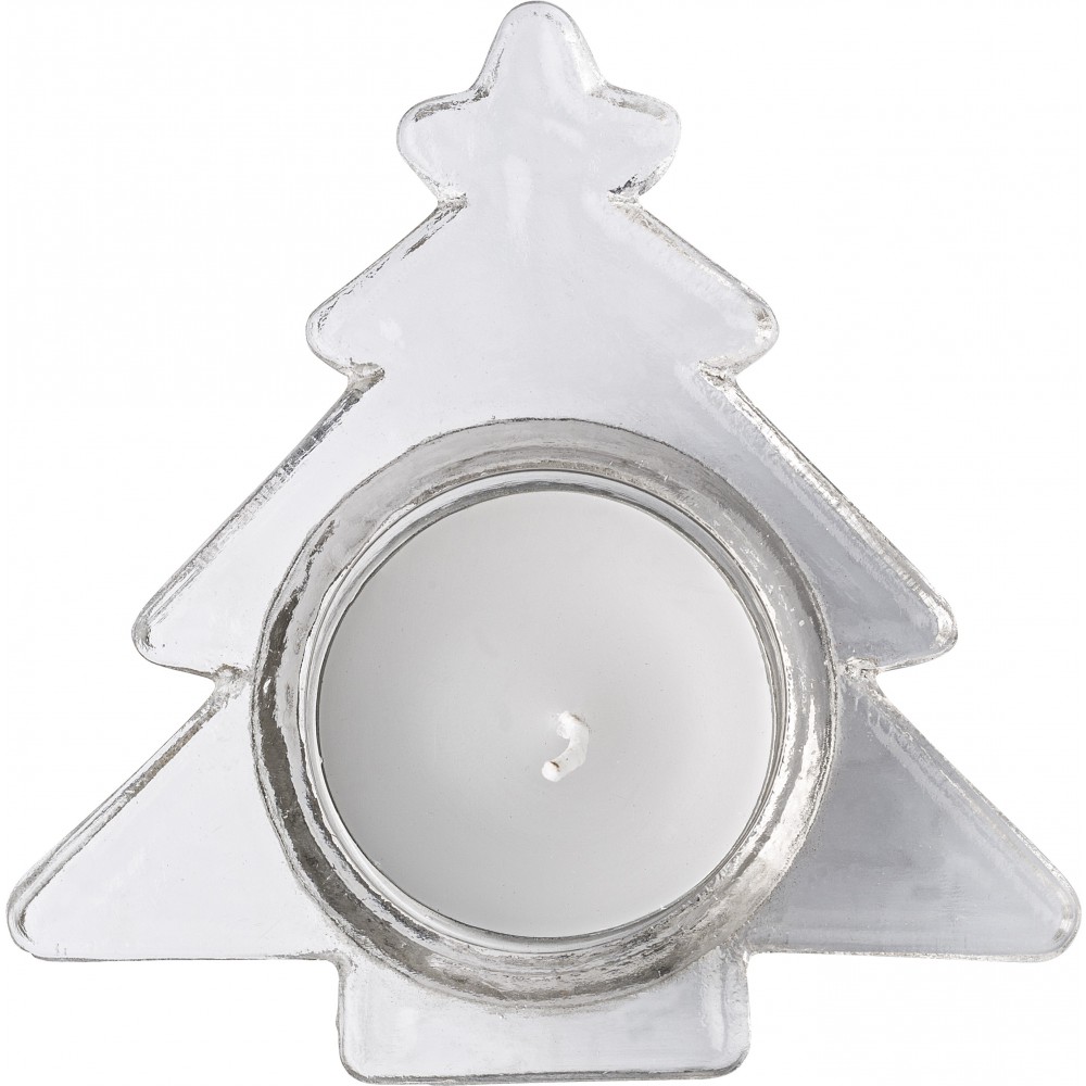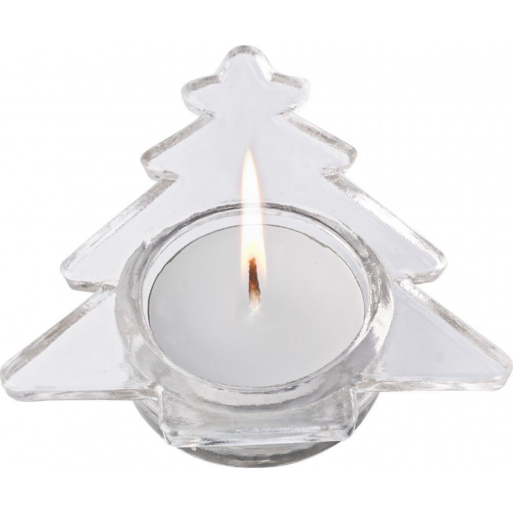 Fenyő alakú üveg gyertyatartó mécsessel. Csomagolása ajándékdoboz.