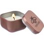 Gyertya vanília illattal, fém tégelyben, fém fedéllel. 40 gramm viaszt tartalmaz. Égési idő kb. 10 óra. Egyenként barna kartondobozba csomagolva.
