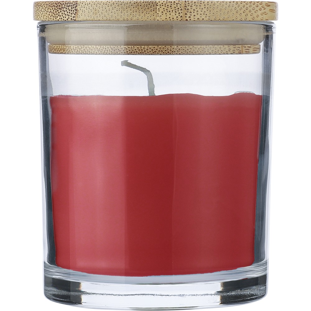 Illatgyertya üveg tartóban, piros