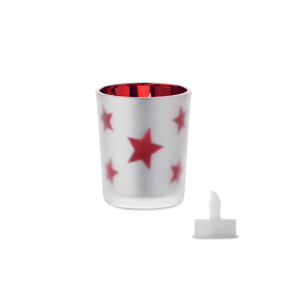 LED mécses PP-ből, üveg tartóban. A működéshez szükséges 1 db CR2032 elemmel szállítjuk.