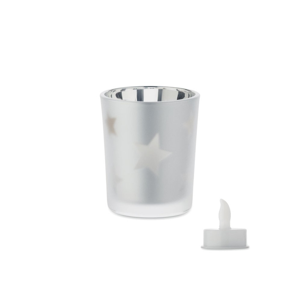 LED mécses PP-ből, üveg tartóban. A működéshez szükséges 1 db CR2032 elemmel szállítjuk.