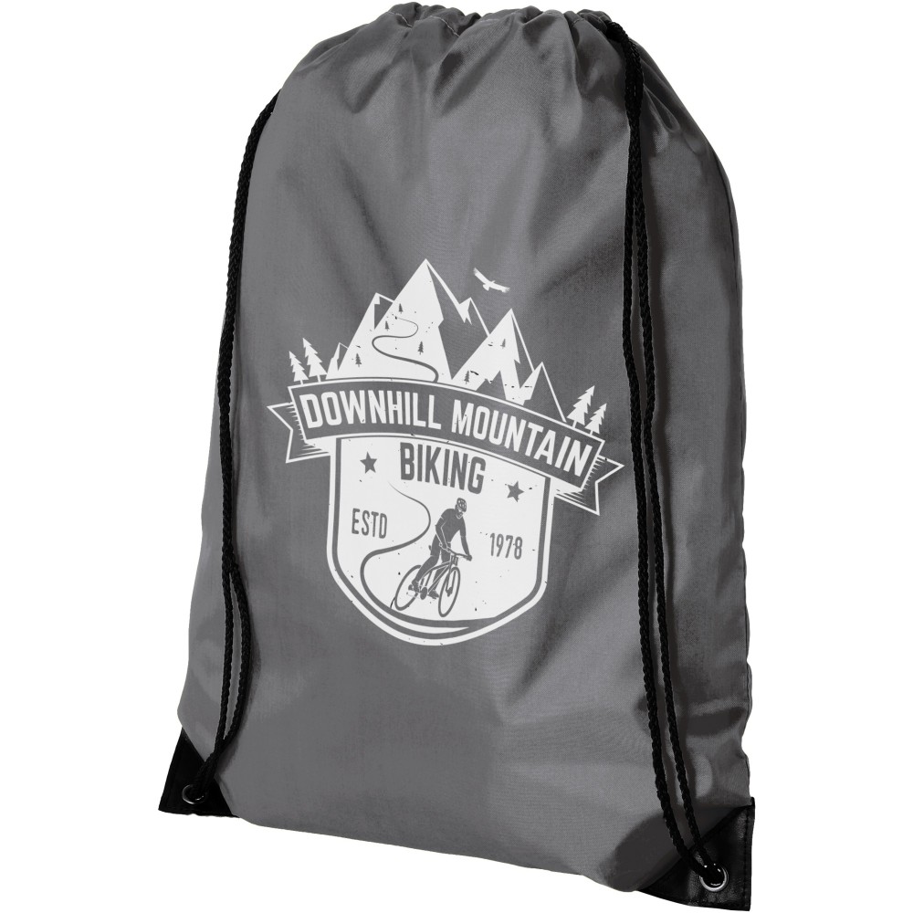 Húzózsinórral zárható nagy fő rekesz. A húzózsinór kialakítása miatt vállon vagy hátizsákként is használható. 210D Polyester.
