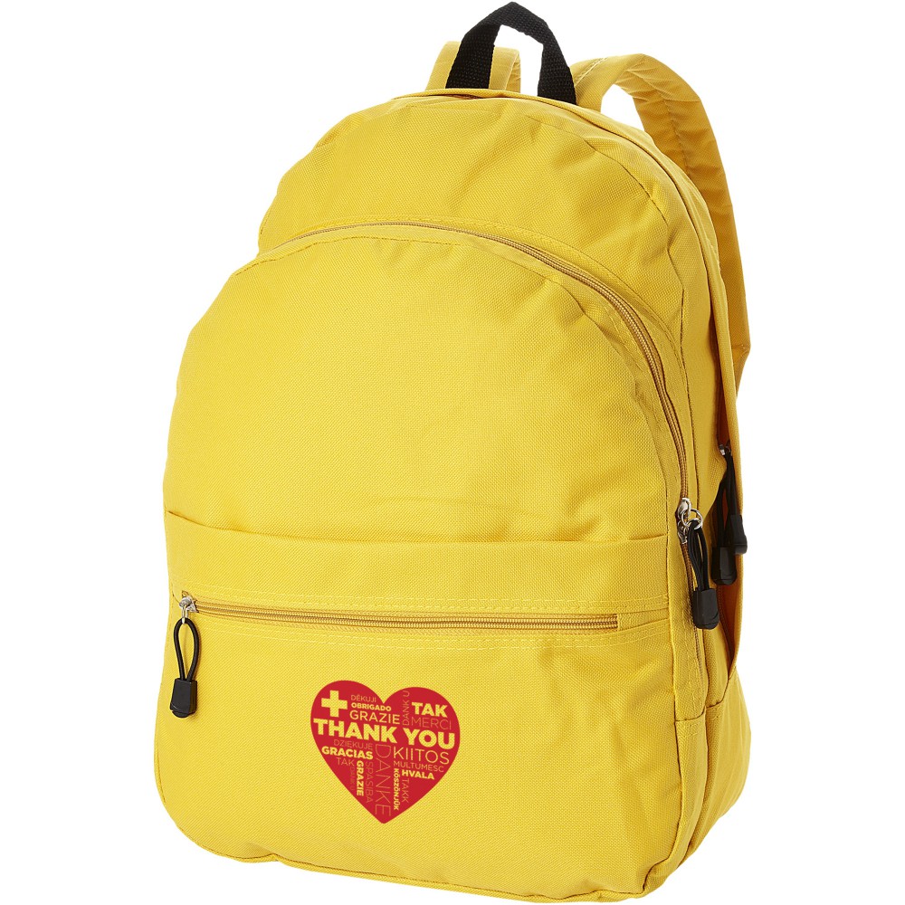 A kényelmes Trend hátizsák nyerő a promóciós hátizsákok között. A divatos kialakítású táska négy rekesszel rendelkezik: két cipzáras rekesszel, egy elülső cipzáras zsebbel és egy tépőzáras elülső zsebbel, így bőséges helyet kínál nagy és kis tárgyak tárolására egyaránt. A termék 600D poliészterből készült.