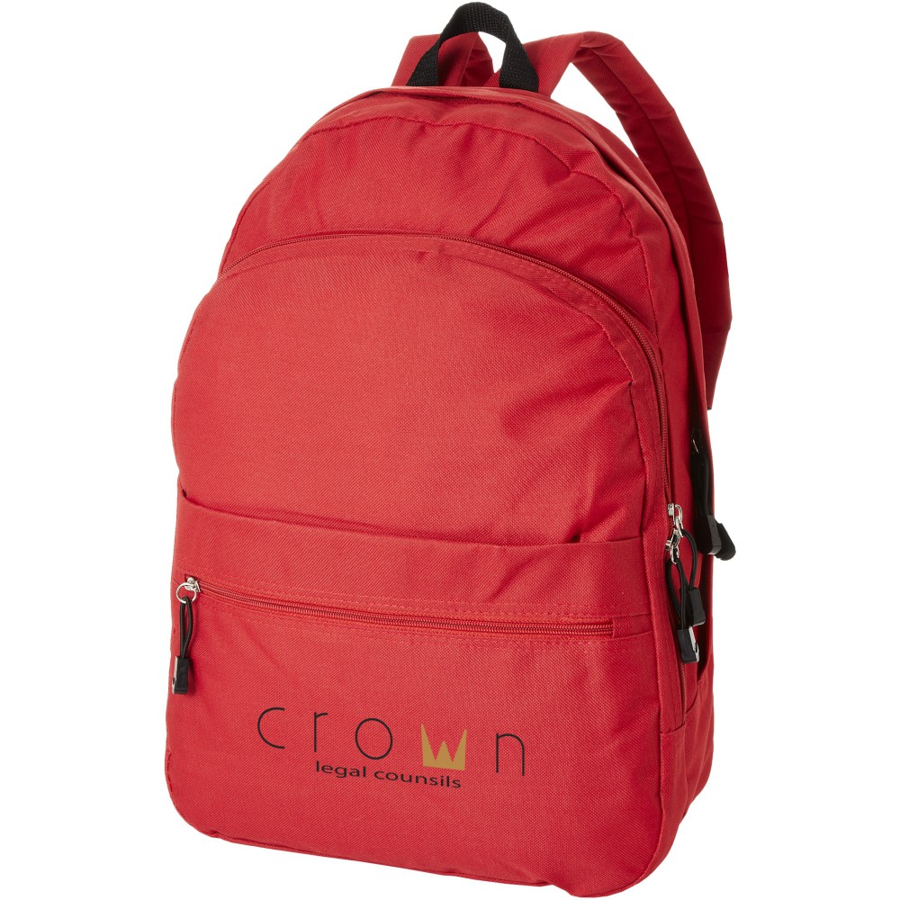 A kényelmes Trend hátizsák nyerő a promóciós hátizsákok között. A divatos kialakítású táska négy rekesszel rendelkezik: két cipzáras rekesszel, egy elülső cipzáras zsebbel és egy tépőzáras elülső zsebbel, így bőséges helyet kínál nagy és kis tárgyak tárolására egyaránt. A termék 600D poliészterből készült.