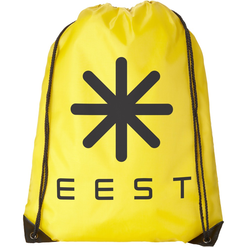 Húzózsinórral zárható nagy fő rekesz. A húzózsinór kialakítása miatt vállon vagy hátizsákként is használható. 210D Polyester.