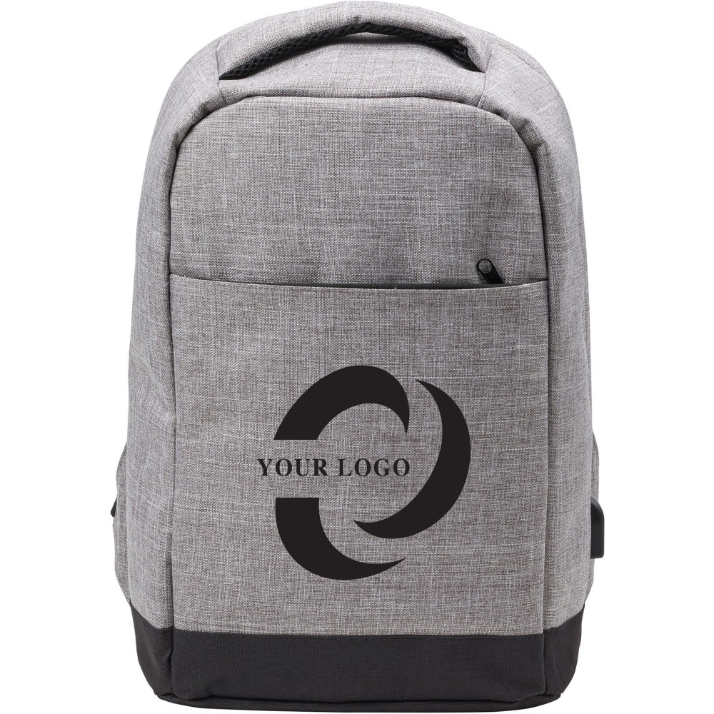 Hátizsák lopás elleni védelemmel, laptoptartóval, sok belső zsebbel, külső cipzáros zsebbel és az oldalán USB csatlakozással. 600D poliészter és PVC hátoldal. 13 -es laptop fér bele.