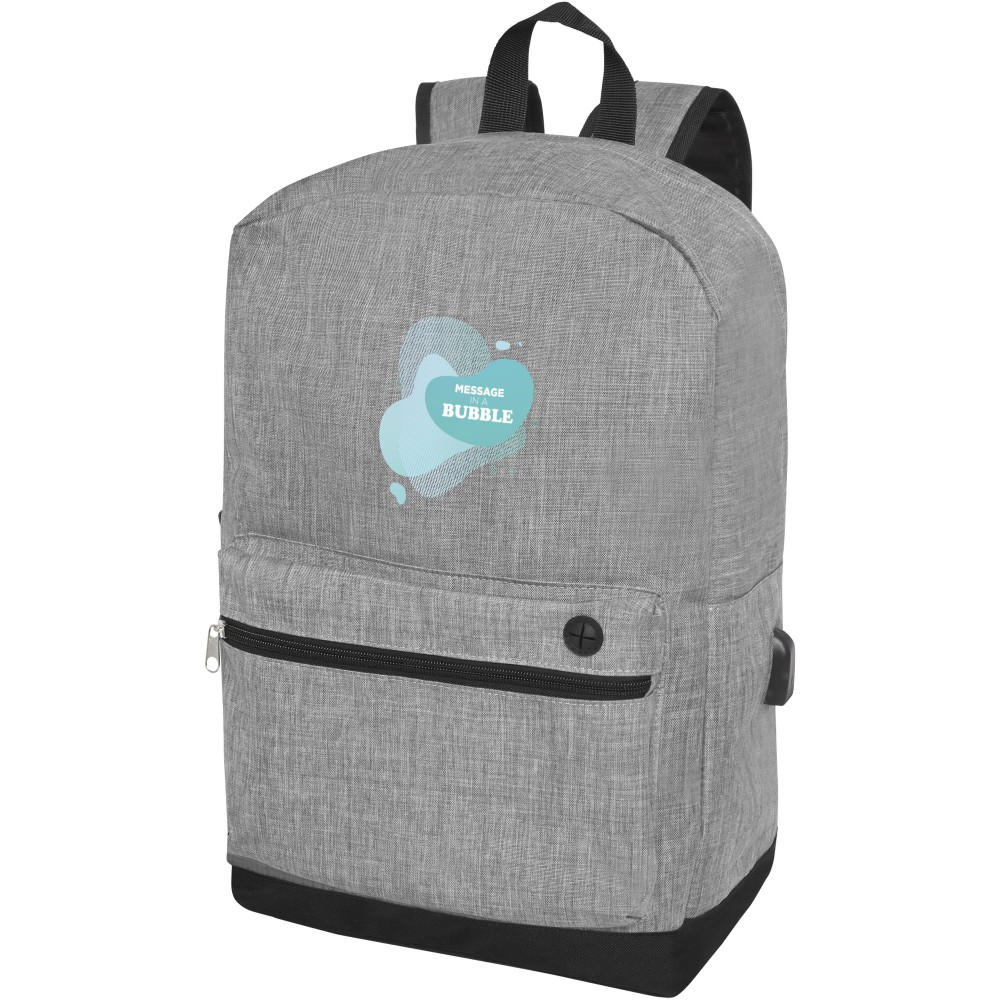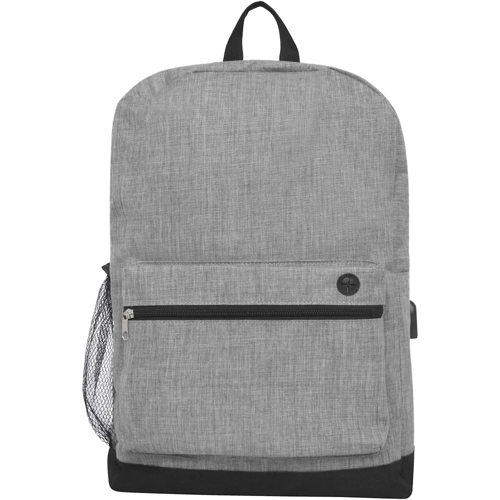 Laptop hátizsák nagy cipzáras fő rekesszel, párnázott 15,6 -os laptop tokkal és egy elülső cipzáras zsebbel, amely gyors hozzáférést biztosít a mobil eszközökhöz. USB-csatlakozóval rendelkezik, beleértve az USB-A kábelt 1 férfi és 1 női csatlakozóval. Kényelmes párnázott vállpántok, fogantyú, és egy hálós zseb palacknak. A tényleges termék színében kisebb eltérések lehetnek a szövetfestékek, szövések és a nyomtatás jellege miatt. 300D poliészter, 600D poliészter.