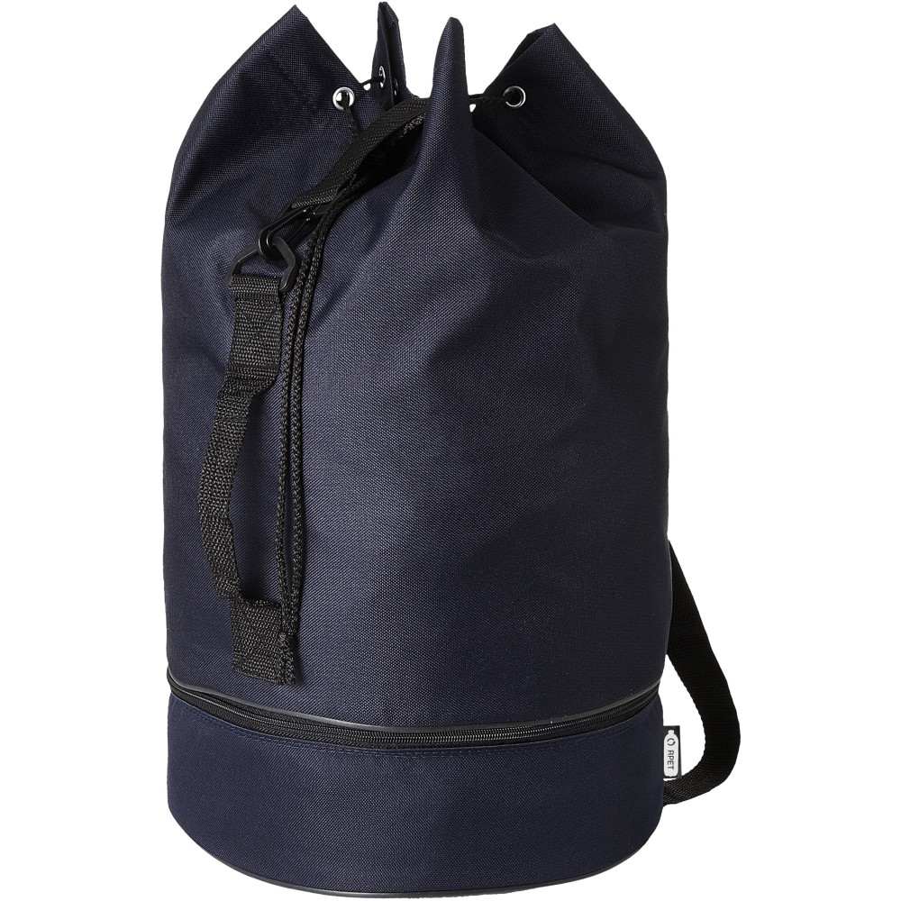 Vízálló tengerészzsák újrahasznosított PET műanyagból, tágas, 20 literes fő rekesszel, húzózsinórral, oldalfogantyúval és állítható vállpánttal. Külön cipzáras alsó rekesszel is rendelkezik a kisebb tárgyak számára.