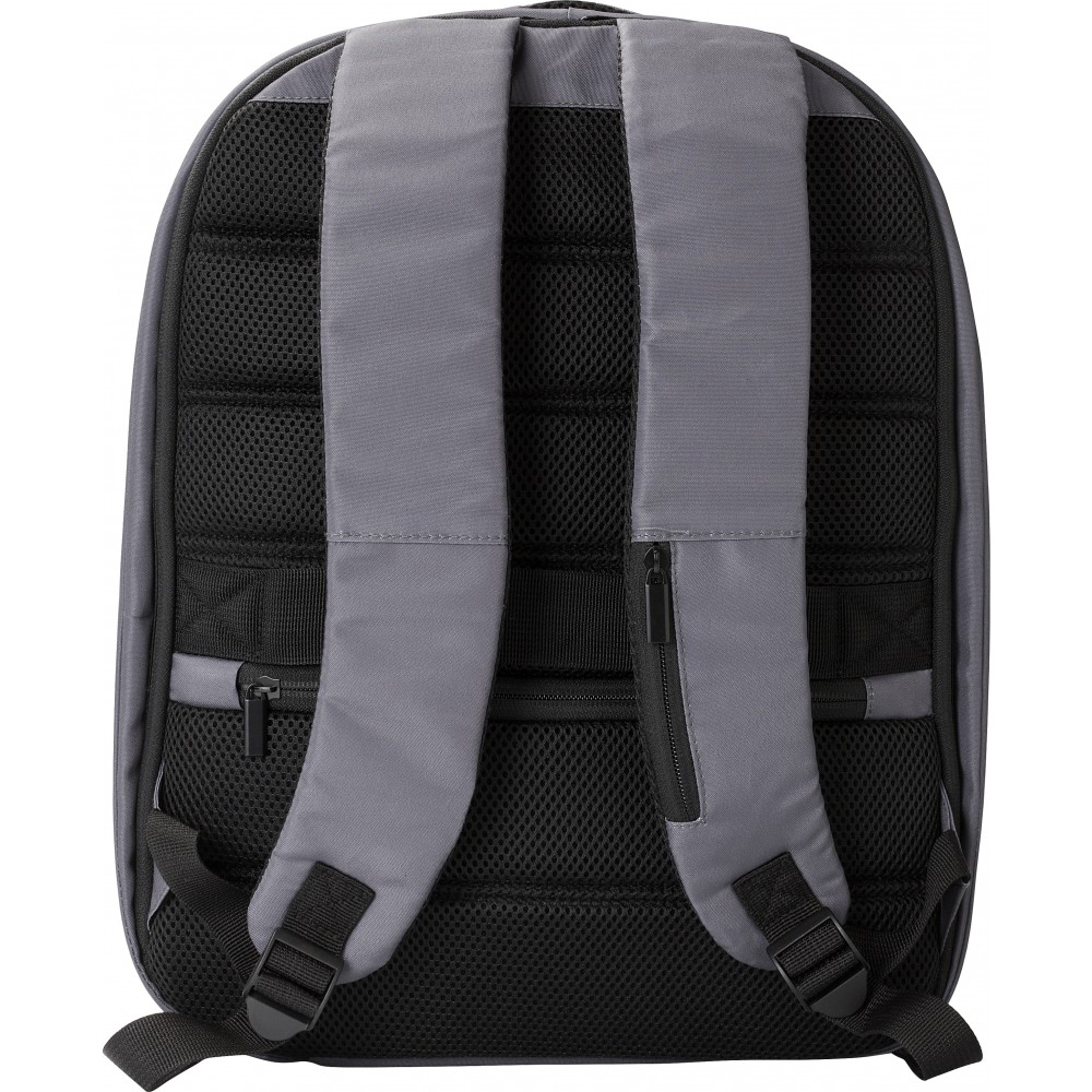Lopásgátló laptop hátizsák egy nagy rekesszel. Hátul lopásgátló zseb. Belül két rekesz, melyek közül az egyik alkalmas 15 -es laptop számára. Párnázott hátpanel. 300D RPET poliészter.
