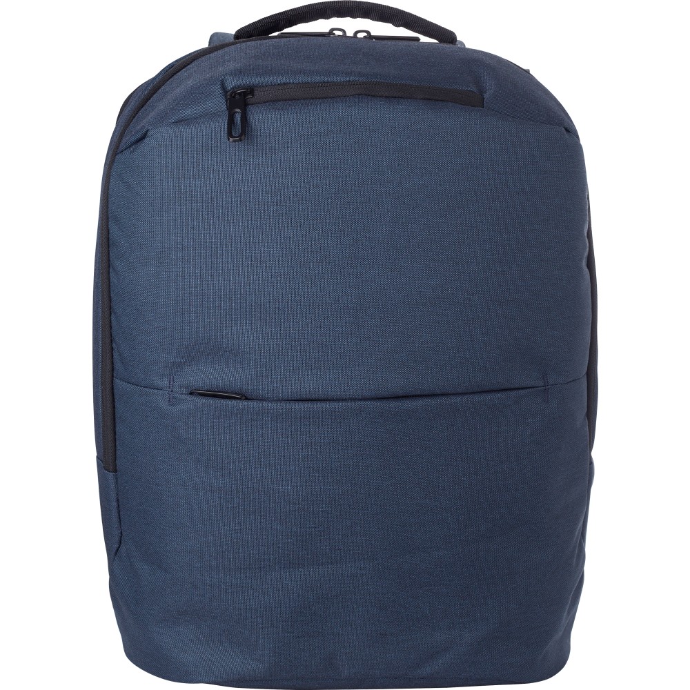 Kéttónusú poliészter (600D) hátizsák. Két cipzáras zseb az elülső oldalon és két nagy cipzáras rekesz a felső oldalon, belül egy laptoprekesz. A hátizsák megerősített, és egy pántot is tartalmaz, amellylel húzókás böröndre rögzíthető.