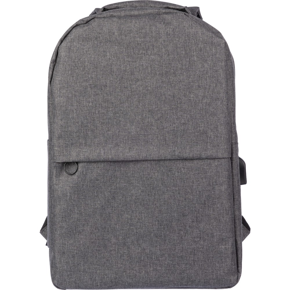 RPET 600D hátizsák USB port kimenettel (belül USB kábellel) nagy cipzáras rekesszel a felső oldalon és cipzáras zsebbel az elején. Belül van egy rekesz a 10 incses készülék és egy a 15 incses készülék számára. Állítható fogantyúkkal.