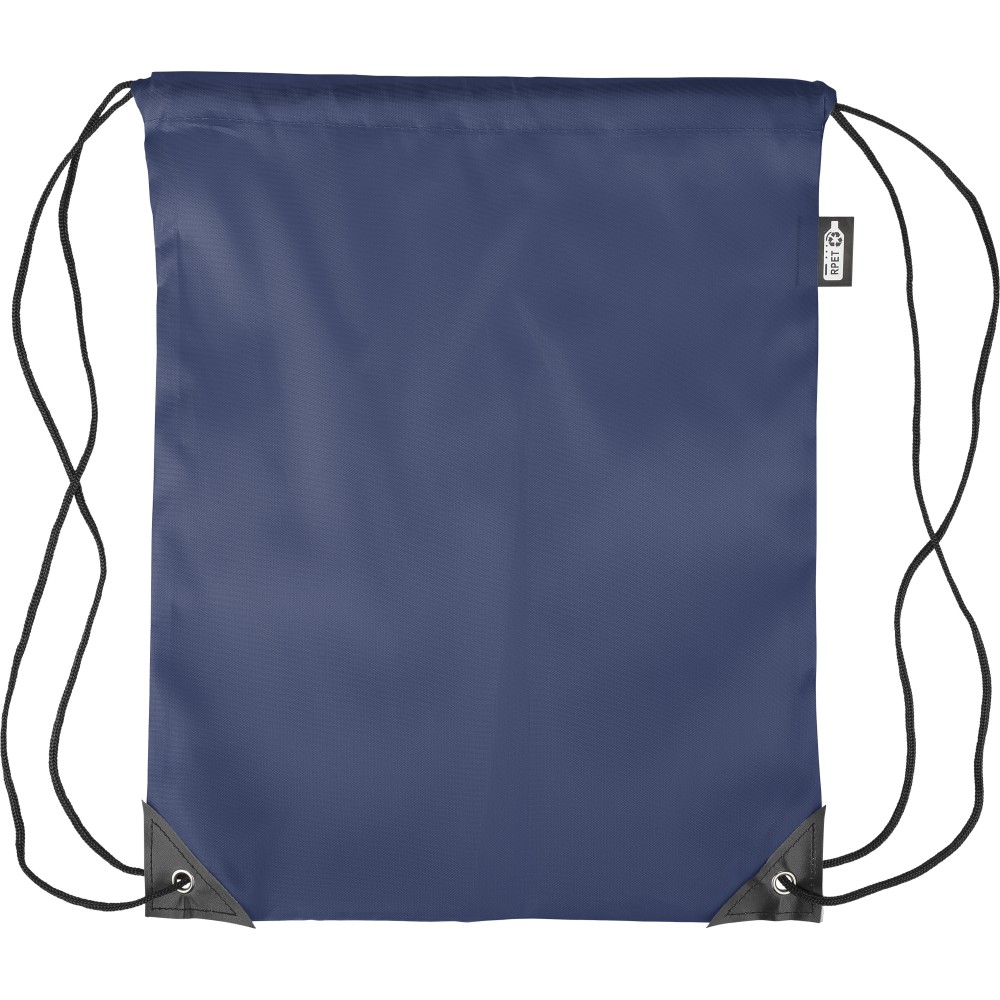 Tornazsák 210D poliészter anyagból, fekete PU sarokerősítéssel az elején, és belső varrással. Fekete nylon húzózsinórral, egy rekesszel. Űrtartalom: 5 liter, teherbíró képesség: 7 kg. rPET címkét tartalmaz.