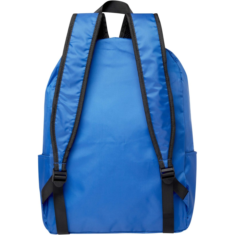 Ez a könnyű, mégis strapabíró hátizsák a kényelem és praktikusság jegyében készült, és könnyedén egy kompakt tasakba hajtható, amelyen szövettáska hurok található a kényelmes hordozás érdekében - ideális utazók, túrázók és a mindennapi használat számára. Cipzáras főrekesszel, cipzáras elülső zsebbel, két oldalsó zsebbel és állítható vállpántokkal rendelkezik. PVC-mentes újrahasznosított poliészterből készült. Űrtartalma: 15 liter.
