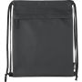 600D rPET poliészter tornazsák. Az elejét PU bevonat teszi vízlepergetővé. Rejtett cipzáras első zsebbel, két tárolórésszel, első és belső zsebekkel. Kapacitása 8 liter, teherbírása 8 kg. Oldalán rPET címkével.