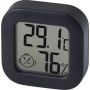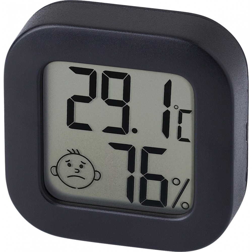 Kis higrométer (kb. 4 cm), amely az aktuális hőmérsékletet és páratartalmat mutatja. Kitámasztható. Az elemeket tatalmazza. Darabonként fehér dobozba csomagolva árkezik. ABS műanyag.