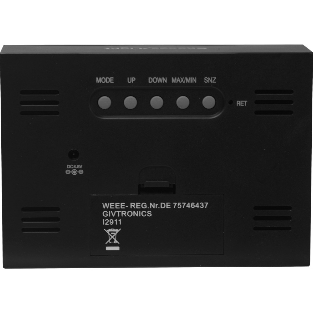 Digitális időjárásjelző állomás. Ébresztőóra, naptár, hőmérő és páratartalommérő. A világítása aktiválásra lép működésbe, fényereje éjszaka sem sérti a szemet. Az elemet tartalmazza.