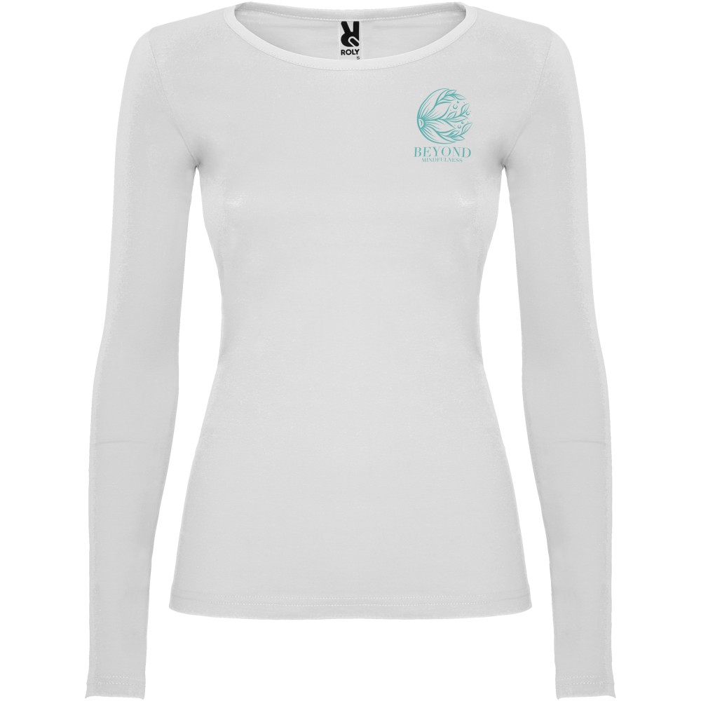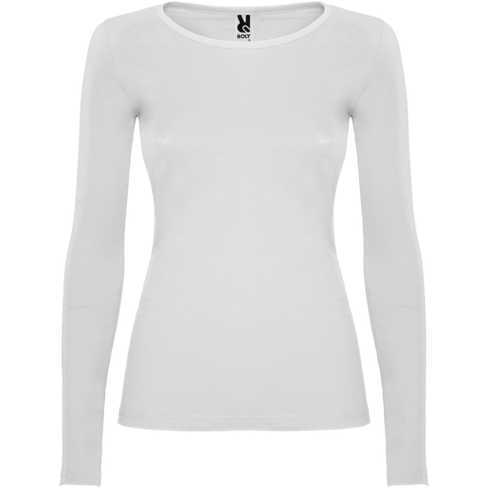 Hosszúujjú, oldalvarott, enyhén karcsúsított női póló 4 rétegű, kerek, keskeny nyakkal. Nincs ujj- és aljpasszé. Megerősített nyaki varrások. A férfi modell körkötött, a gyermek és női modell oldalvarrott. Szürke szín: 85% pamut és 15% viszkóz, 160 g/m2. Egyéb színek: 100% pamut, 160 g/m2.
