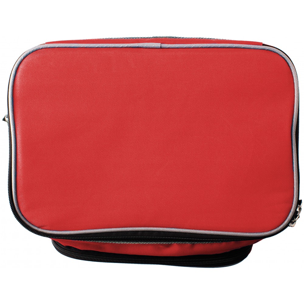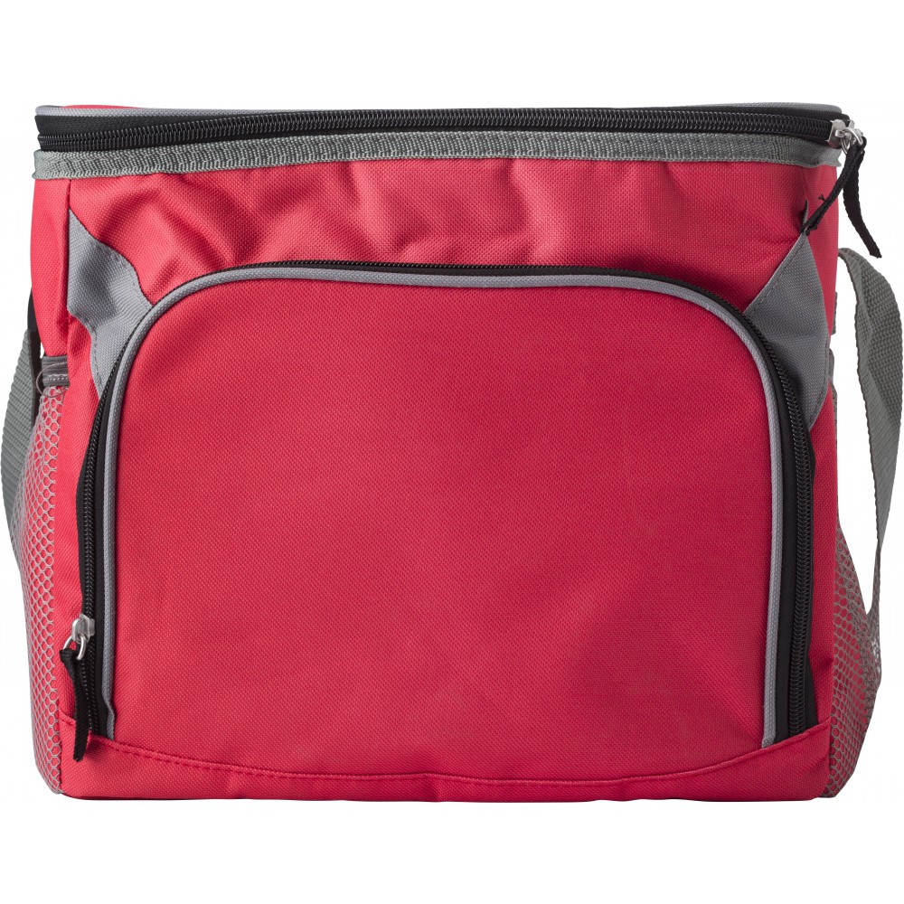 Hűtőtáska nagy cipzáros elsőzsebbel és mindkét végén hálós zsebekkel. 600D poliészter.