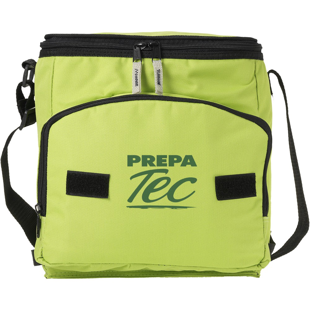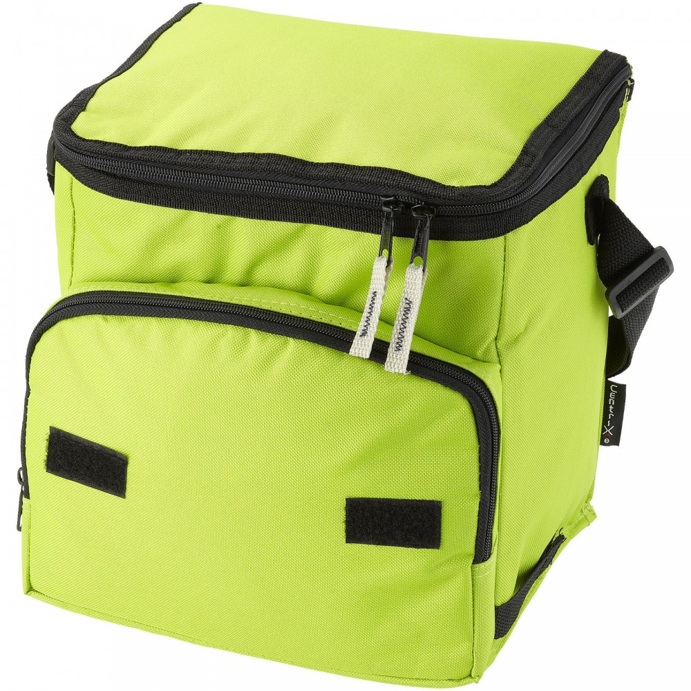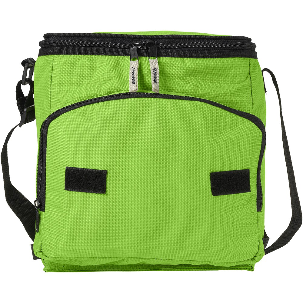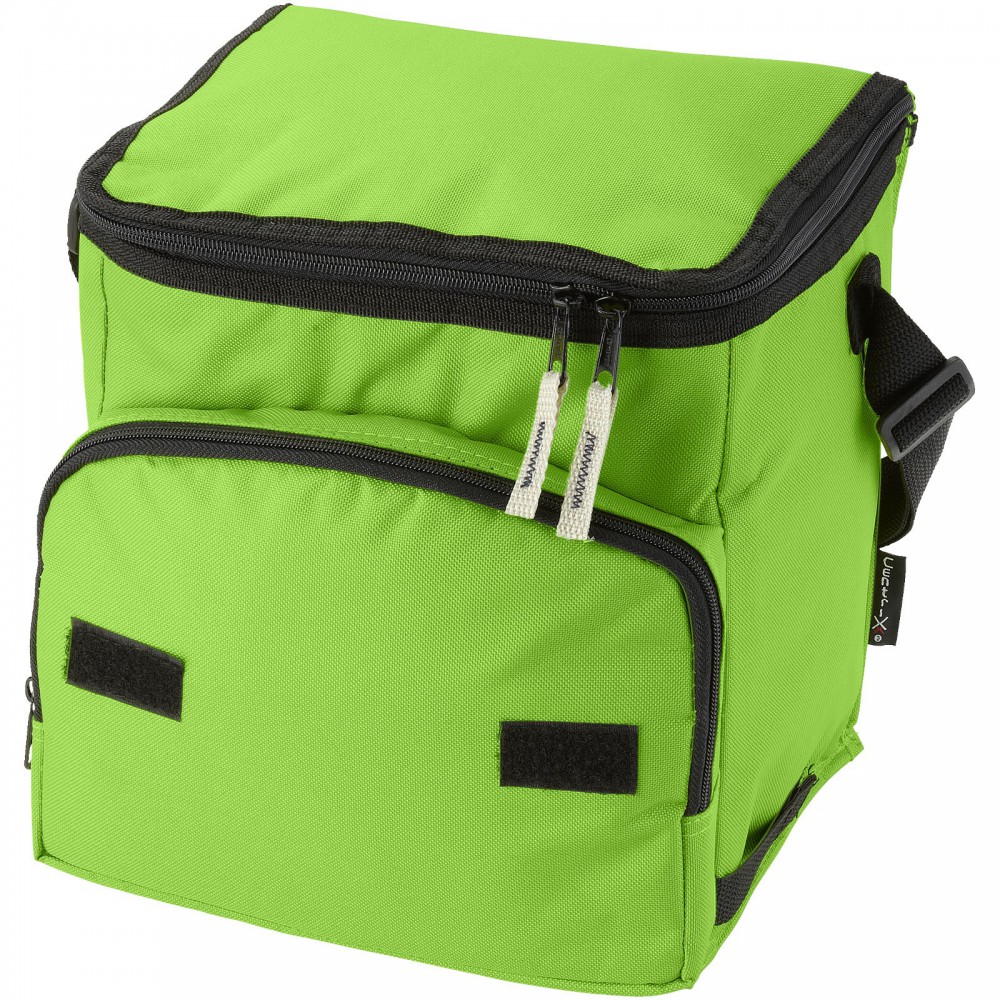 Összehajtható hűtőtáska cipzáras fő rekesszel és cipzáras elülső zsebbel. Állítható vállpánt. A hűtőtáska laposra hajtható az elülső zseben található horog és hurok segítségével. Egyéb kiegészítőt nem tartalmaz.