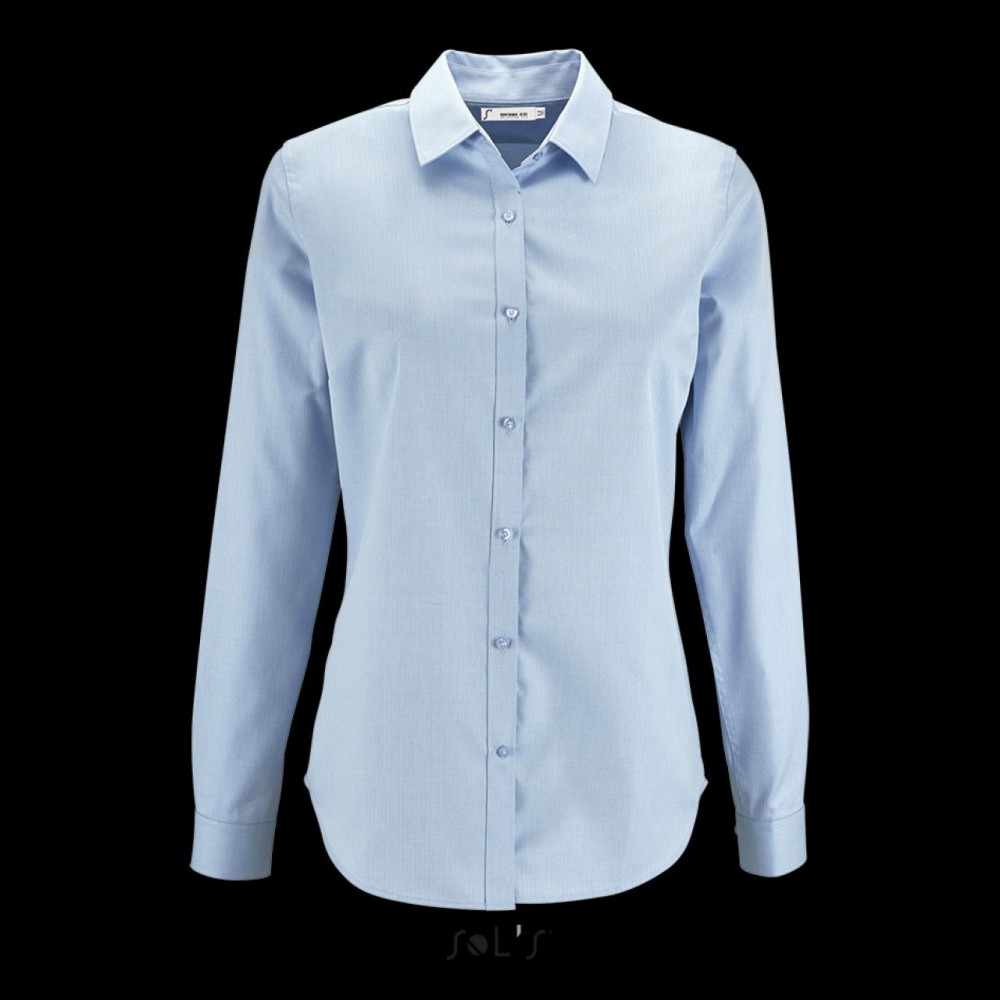 82% pamut és 18% poliészter anyag. Hosszúujjú, karcsúsított női ing halszálkamintás, texturált mintázattal. Egygombos, allítható kézelő. 125 g/m2. XS-2XL.