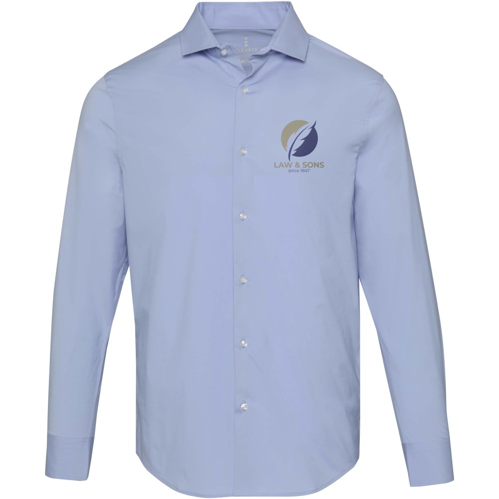 A Carnelian hosszúujjú férfi puplin ing modern kifinomultságot és fokozott kényelmet ötvöz. Kiváló minőségű, BCI-tanúsítvánnyal rendelkező pamutból készült, hozzáadott rugalmassággal, finom 30 denier kétrétegű sodrott szálszerkezettel, amely sima felületet, kivételes tartósságot és luxus érzetet biztosít. A könnyű puplin szövet friss, tiszta megjelenést kölcsönöz, míg a normál fazon mozgásszabadságot és egész napos kényelmet biztosít. Klasszikus, normál gallérral ellátott Carnelian ing sokoldalúan viselhető, mind üzleti, mind alkalmi viselethez. Puplin 97% BCI pamutból és 3% elasztánból, 133 g/m2.