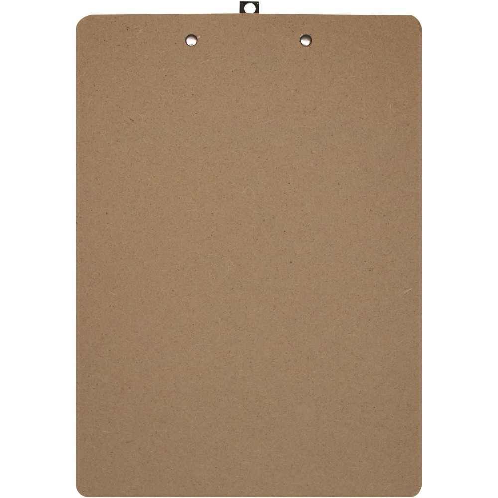Praktikus MDF (közepes sűrűségű farostlemez) írótábla. A papírt rögzítő csipesz vasból és PP műanyagból készült. Mérete: 32 × 23 × 0,24 cm.