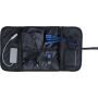 Feltekerhető táska műanyag csattal. Több zsebbel és cipzáras rekesszel rendelkezik a töltőkábelek vagy eszközök tárolására. Anyaga: 1680D poliészter.
