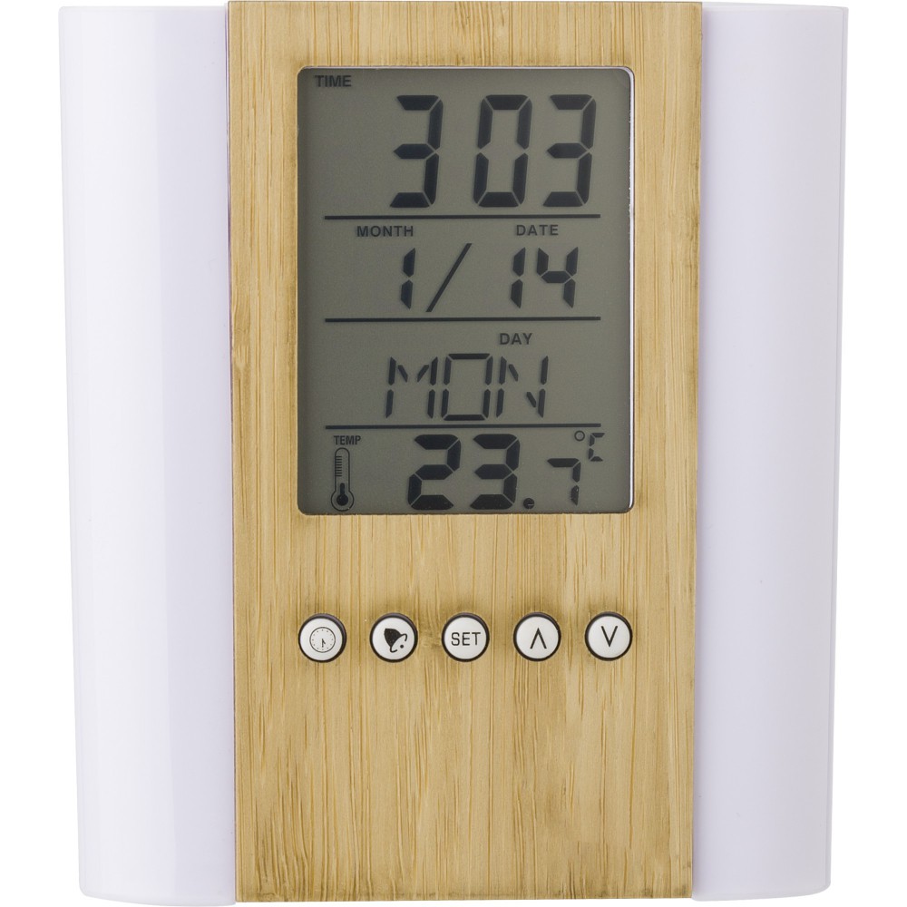 Bambusz írószertartó órával, bambusz