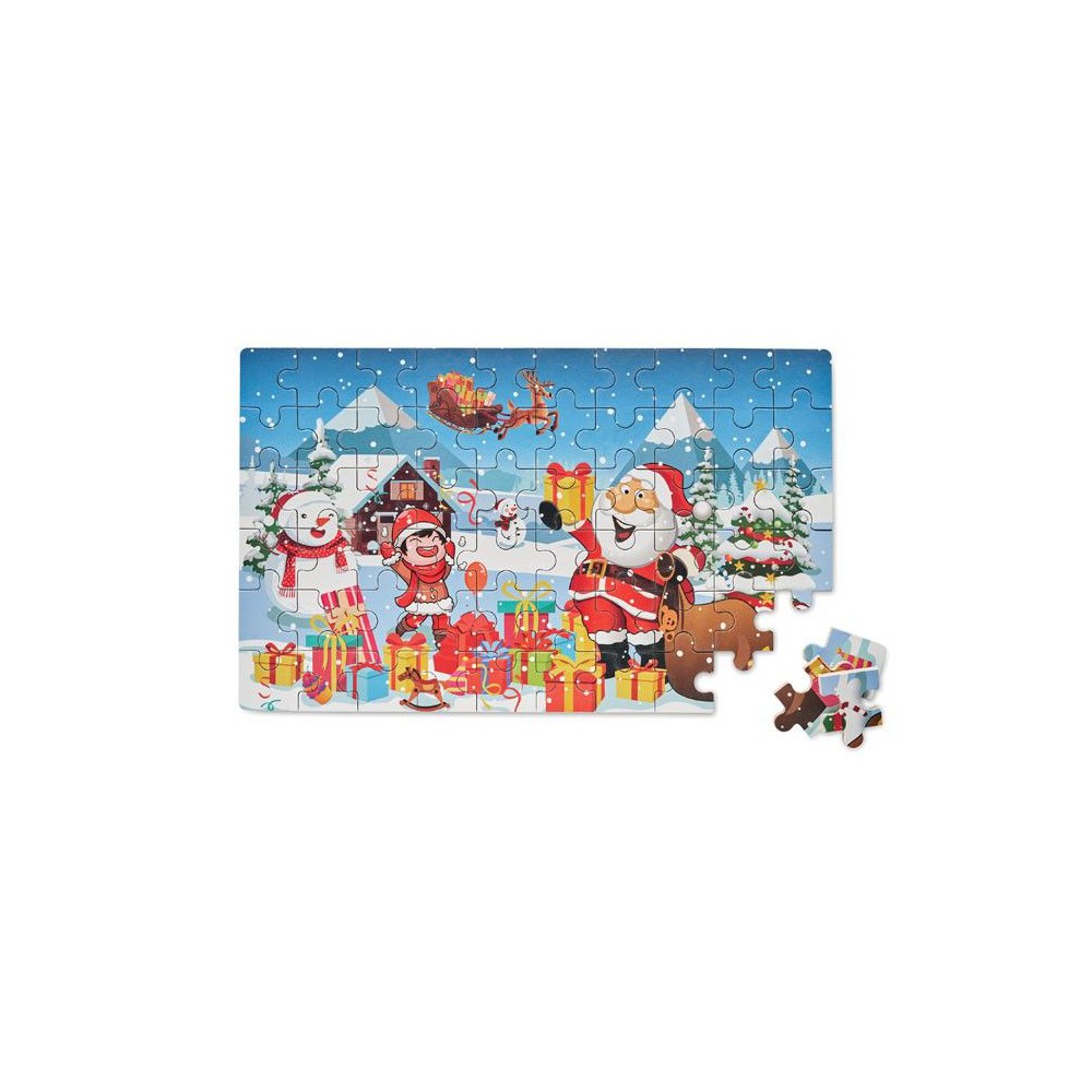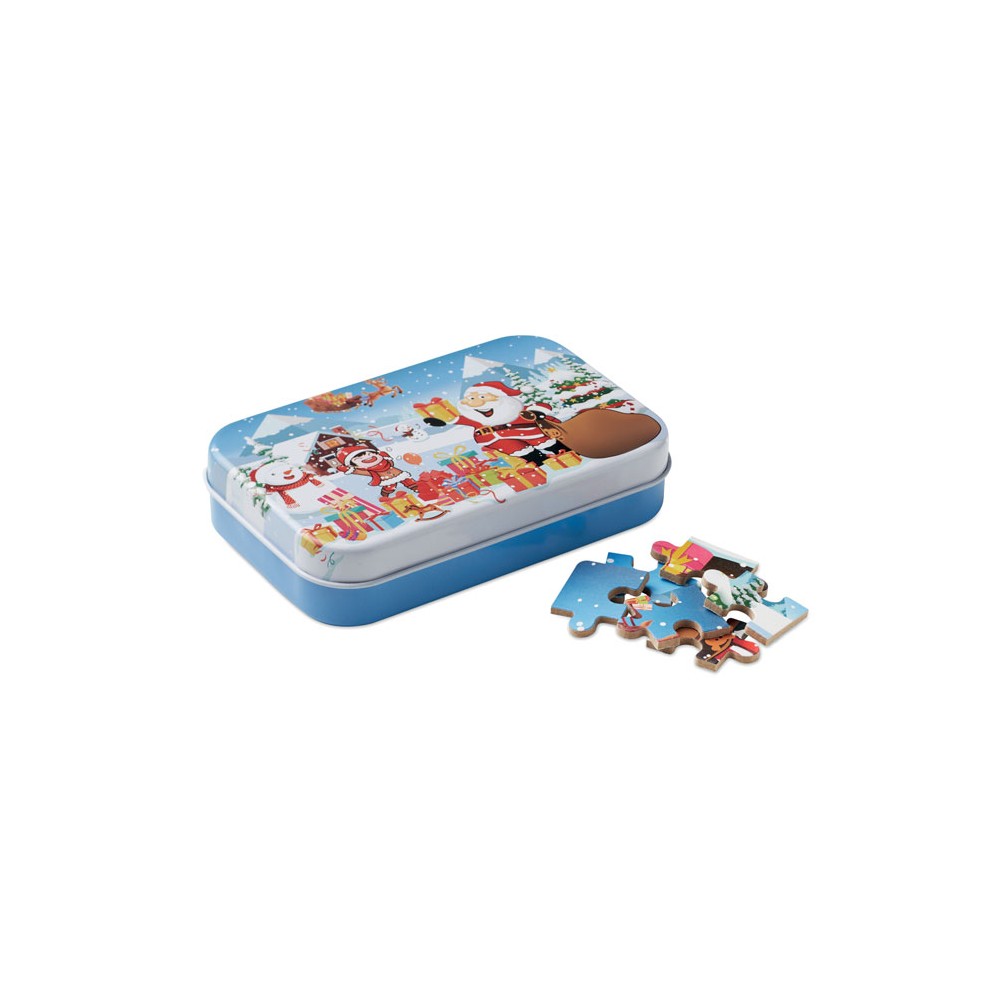 Fából készült karácsonyi puzzle óndobozban. 60 darabos.