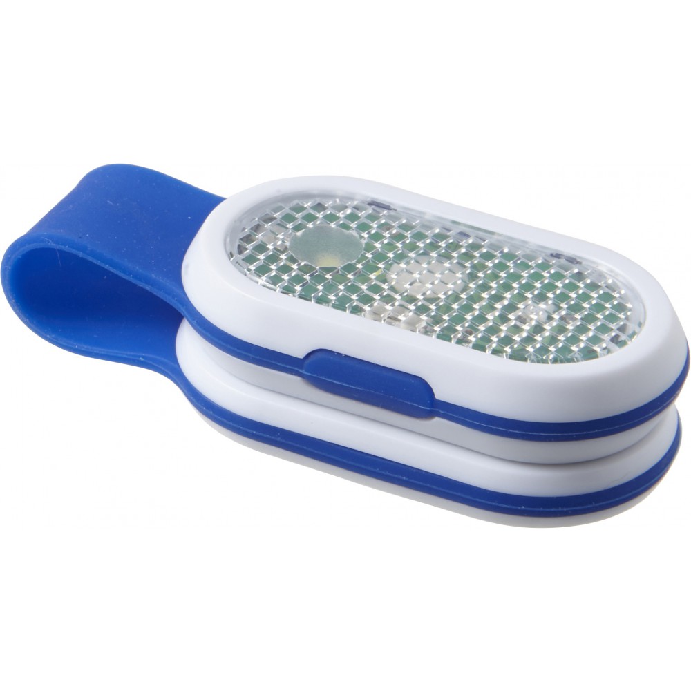 Biztonsági lámpa erős COB (Chip On Board) LED-del, fehér és piros fénnyel. Az erős mágnesek, valamint szilikon pánt rögzíti az első és a hátsó panelt. Az elemet tartalmazza.