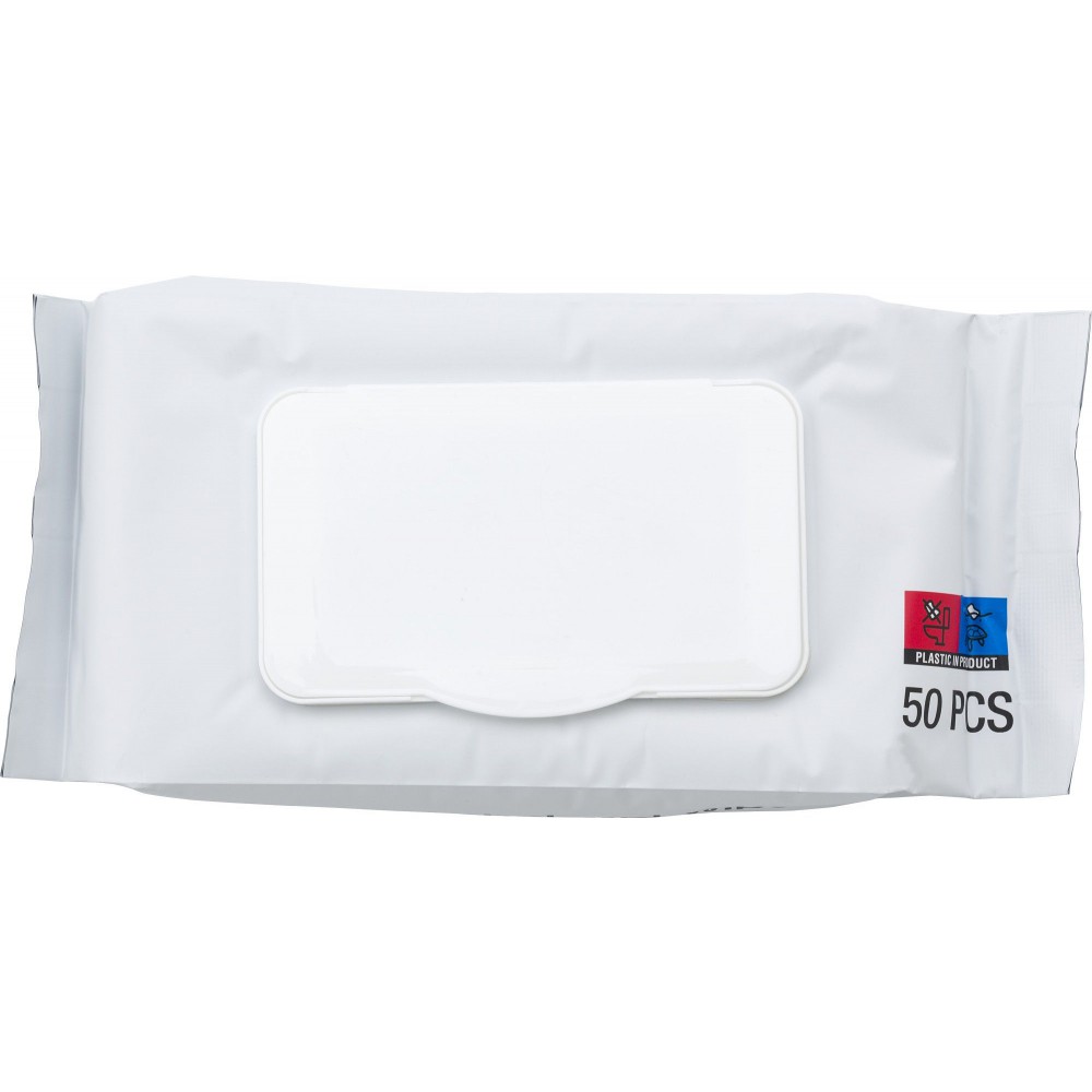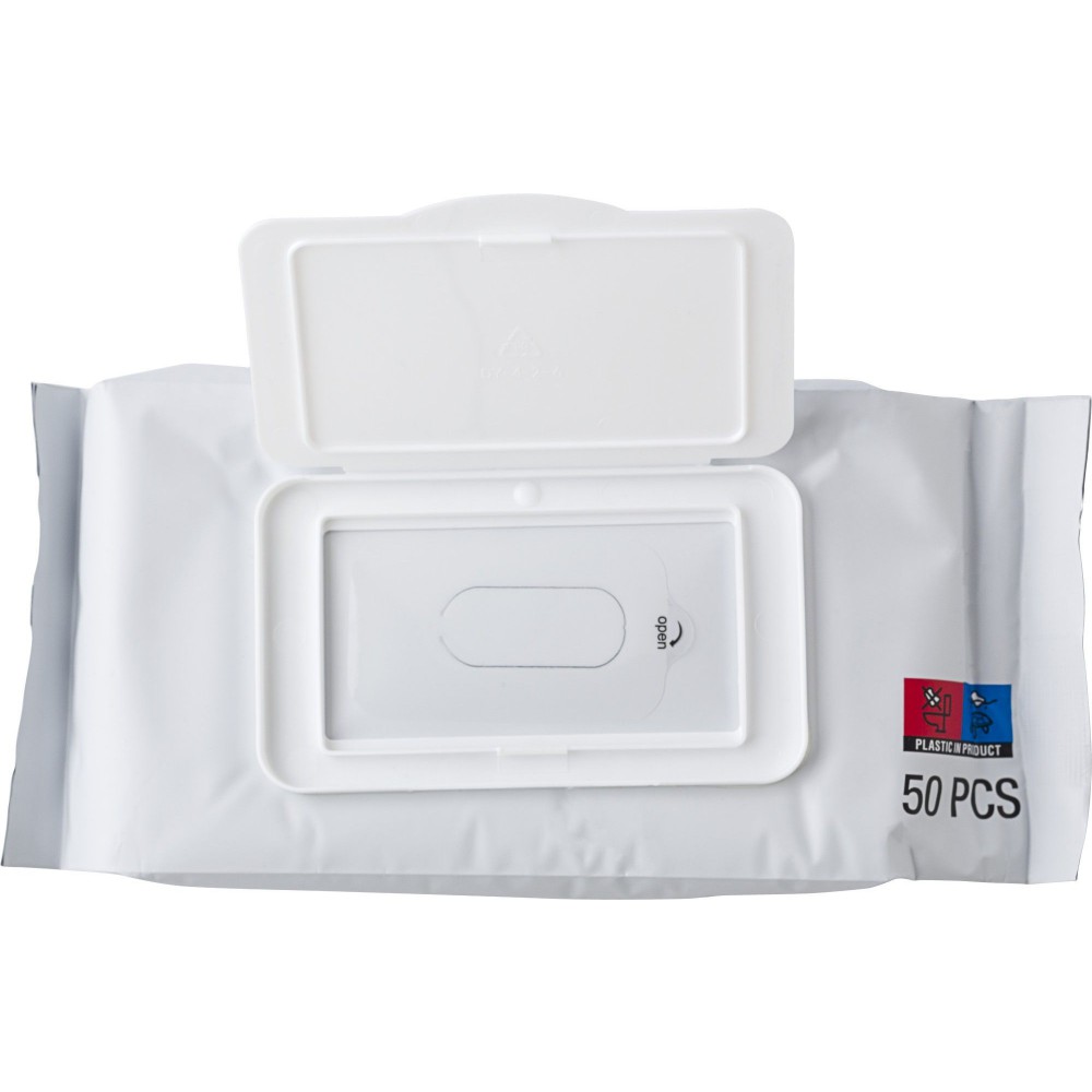 50 db nedves törlőkendő jól visszazárható tartóban, 75% alkohollal.