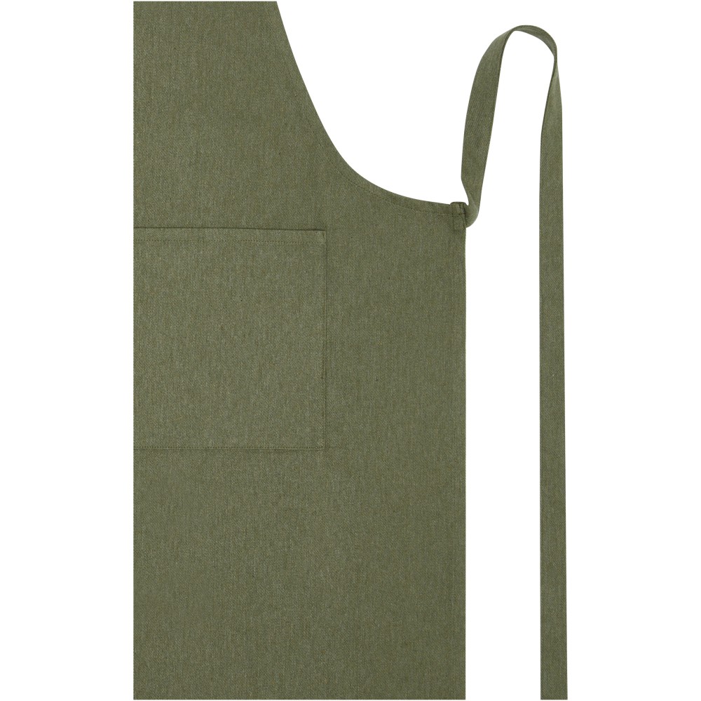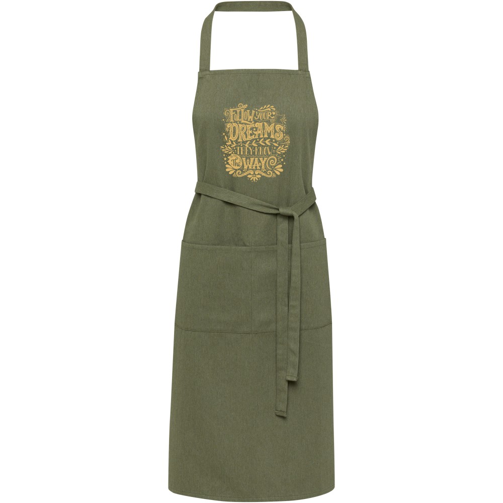 A Shara kötény 70% újrahasznosított pamutból és 30% újrahasznosított poliészterből készült, így vastag, strapabíró és kényelmes viselet. A kötény 2 egymás melletti zsebbel (egyenként 22 x 20 cm) és egy 1 méteres megkötővel rendelkezik. A kötény Cyclo újrahasznosított szálakat tartalmaz, ahol előválogatott hulladékot használnak, amely meghatározza a fonal színét. Minden kötényhez egy Aware nyomjelző is tartozik. Ez az innovatív funkció lehetővé teszi a felhasználók számára, hogy egy QR-kód segítségével nyomon követhessék a termék eredetét és útját, növelve az ellátási lánc átláthatóságát és elősegítve a termék és a gyártási folyamat közötti szorosabb kapcsolatot.