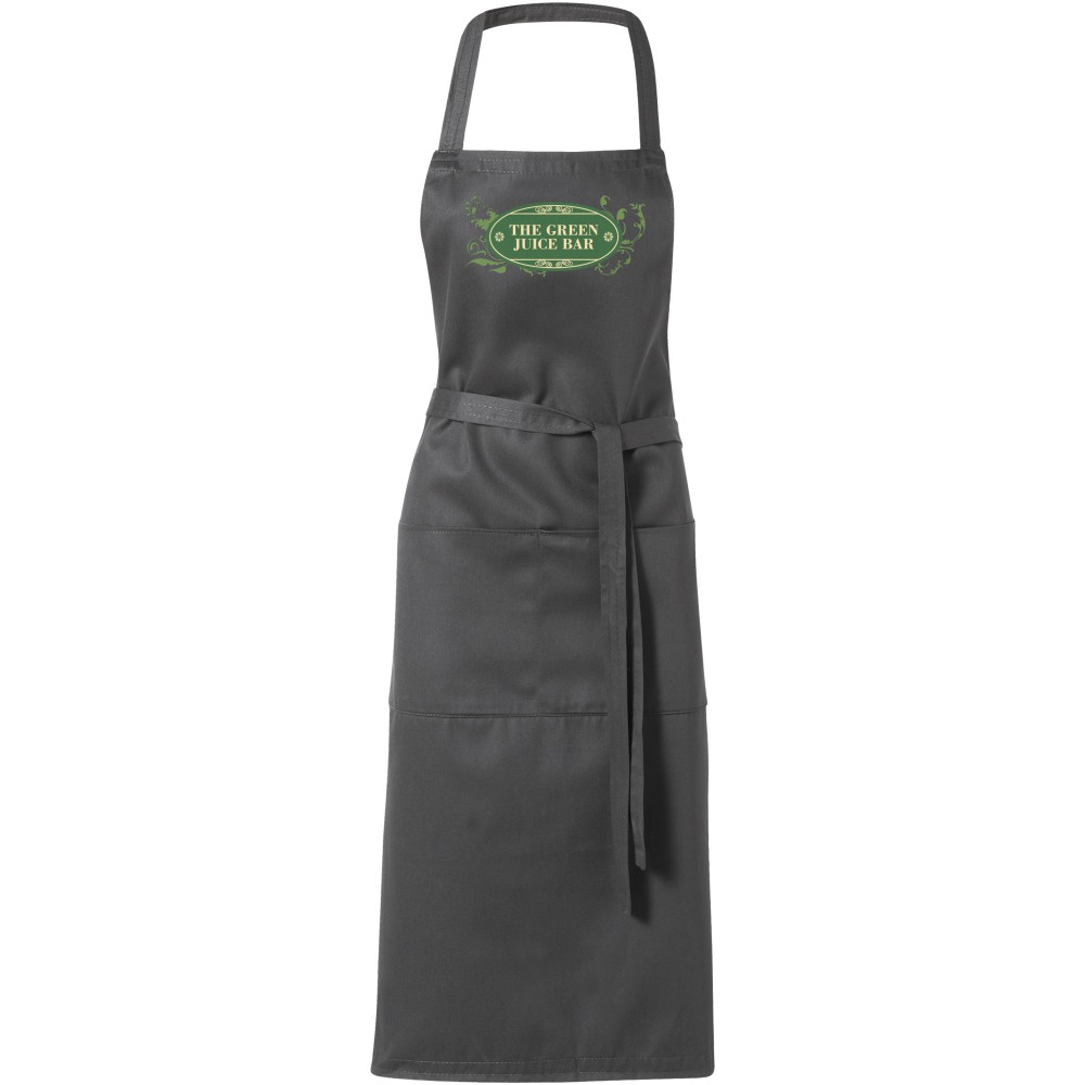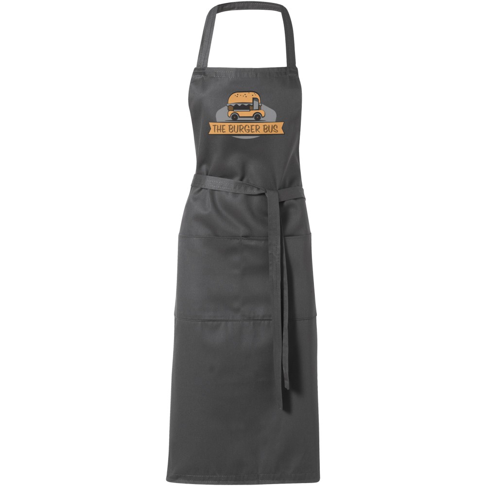 Twill anyagú kötény 2 zsebbel és 1 m megkötővel hátul.