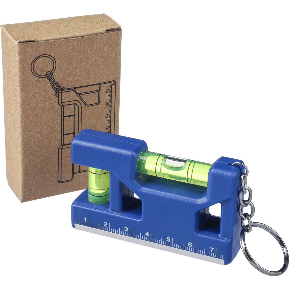 Újrahasznosított ABS-ből készült mágneses kulcstartó vízmértékkel és méretjelzéssel a tetején. Alján mágneses csíkkal fém felületekre való rögzítéshez. Kulcskarikát és újrahasznosított ABS logót tartalmaz a hátoldalán. Egyenként csomagolva, barna kartondobozban.