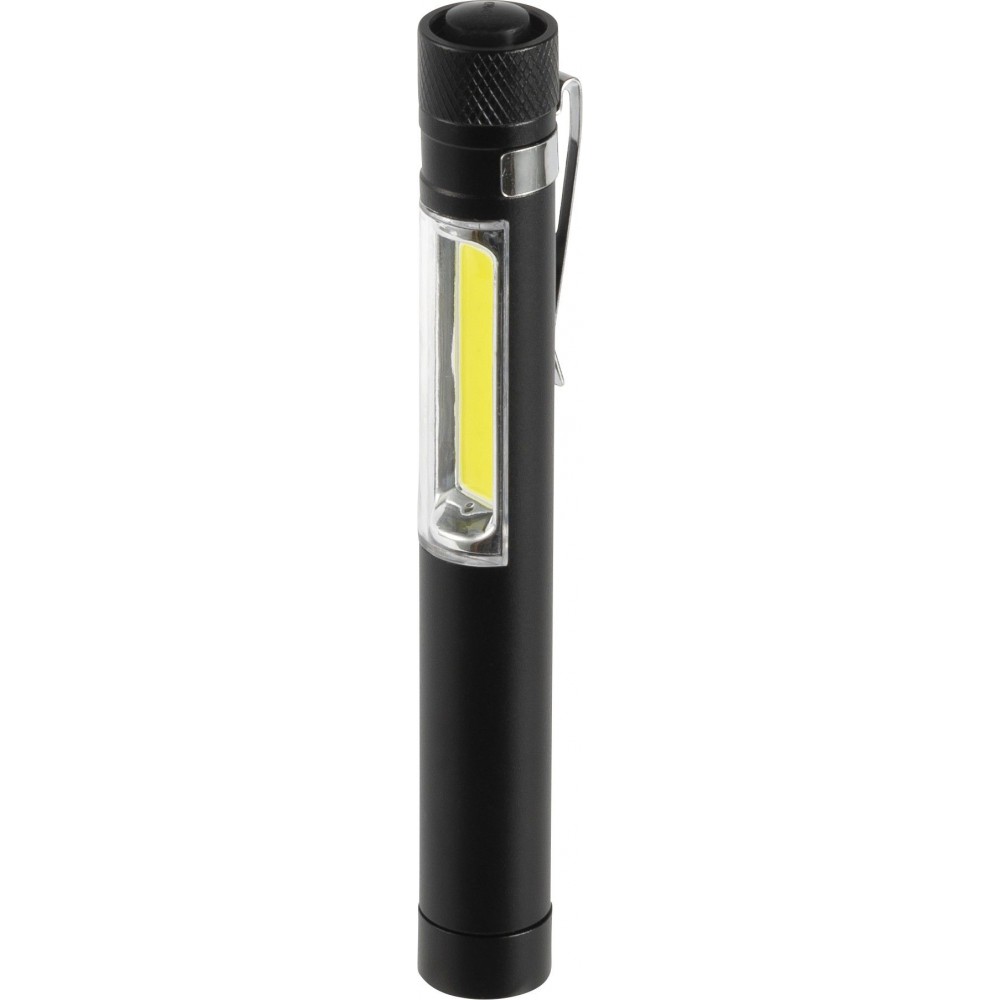 COB zseblámpa (50 lumen) mágnessel az alján és fém zsebklipsszel. Tartalmaz elemeket. Egyenként fehér dobozba csomagolva. Anyaga: alumínium.