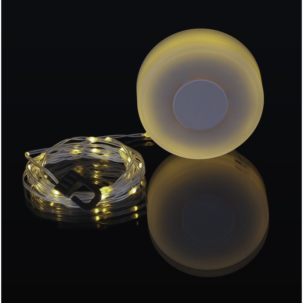 Tölthető kempinglámpa kétféle világítási móddal. 8 m hosszú fényfüzérrel, mely visszatekercselhető a lámpa belsejébe. 1000 mAh-s akkumulátorral, C-típusú csatlakozóval. Csomagolása barna papírdoboz.