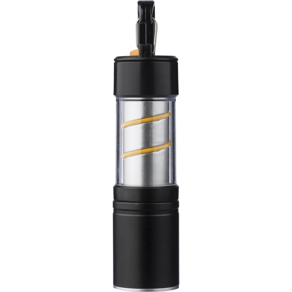 Alumínium és ötvözet COB zseblámpa ABS burkolattal, fém klipsszel és fekete karabinerrel. 3 világítási funkcióval, zoom móddal, nyomógombbal és mágneses talppal. 500 mAh-s lítium-ion akkumulátorral működik, C típusú töltéssel. 30 cm-es fekete kábellel. Egyenként csomagolva, barna kartondobozban.