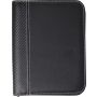Cipzáros A5 irattartó PU borítással, fehér díszítő tűzésekkel, tolltartó hurokkal, hat különböző méretű zsebbel, 30 lapos, vonalas jegyzettömbbel, mikroszálas béléssel. A tollat nem tartalmazza.
