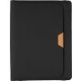 RPET mappa kb. A4-es méretben, cipzárral, több rekesszel és egy tollhurokkal. Tartalmaz egy jegyzettömböt 20 vonalas lappal. Kis zseb az elején. Egyedi csomagolás barna kraft dobozban.