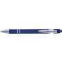 Golyóstoll kék tollbetéttel, gumis felülettel és érintővel kapacitív képernyőkhöz. Kék tollbetéttel. A hegy és a klipsz ezüst színű műanyag. ABS, alumínium.