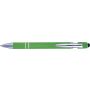 Golyóstoll kék tollbetéttel, gumis felülettel és érintővel kapacitív képernyőkhöz. Kék tollbetéttel. A hegy és a klipsz ezüst színű műanyag. ABS, alumínium.